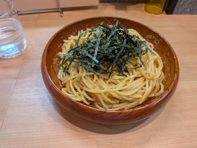 海の幸スパゲッティ1350円。久々に食べたくなって注文。もうかなりの常連かも。星マークのメニューなら先ず間違いないと思います。その中でもこれとタラコとウニは一押しでオススメです。メニューによって結構値段があるので予算で選んでみてください