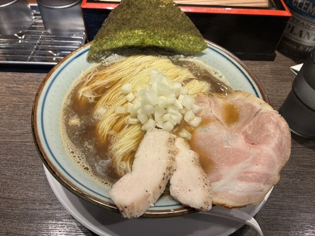 塩ラーメンベースにいつものチャーシュー、メンマ、ノリに加えてペースト状の梅と、きざんだシソ、ネギ、鰹節も乗ってました。