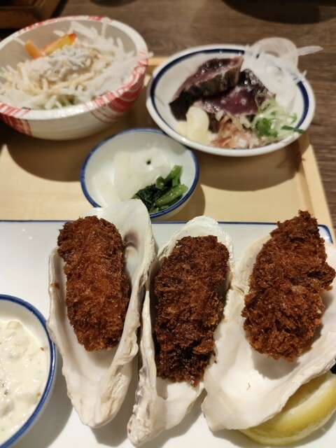 이번에는 굴튀김과 짚구이 정식을 부탁했습니다