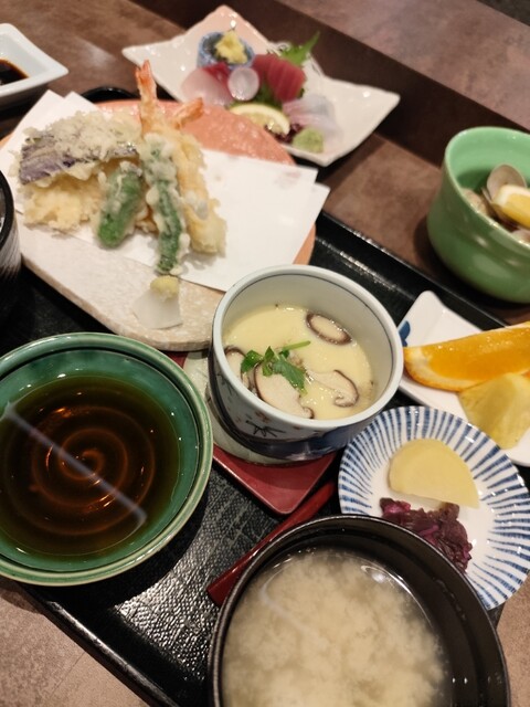 今回はお刺身、天ぷら、茶碗蒸し、あさりの酒蒸し、