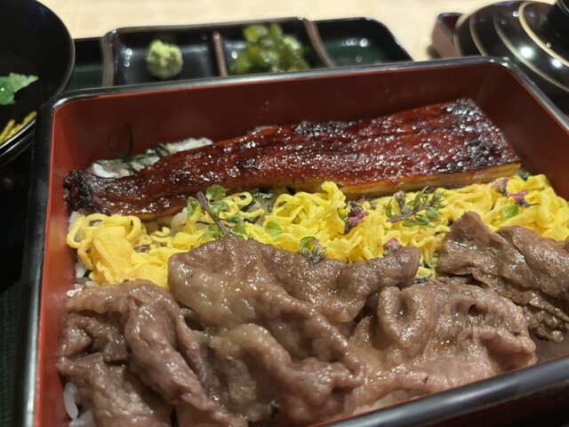 季節限定メニューの生牡蠣、鰻と和牛の相盛り重!どちらも美味しく頂きました!