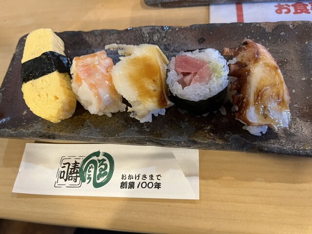 1皿に店主のおまかせ5貫が載って出てくる。新鮮なネタが載っており美味しかった。