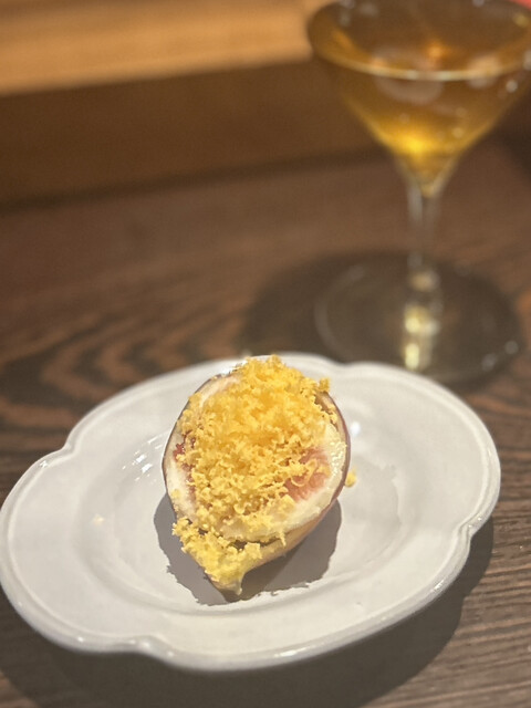 とろとろのお茄子に、イチヂクのカラスミ載せ