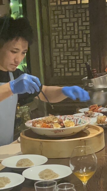 伊勢海老は、頭の部分はスープをふんだんに吸った春雨が敷かれており