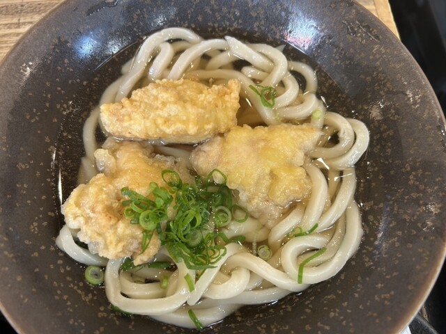とり天うどん、半熟卵天