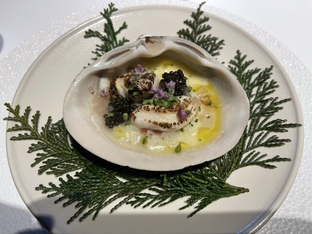 中に入り店内は落ち着いた空間で目の前は緑見える席だったので何処かの旅館に来てフレンチを食べてるような空間で優雅にゆっくりと食事を頂ける雰囲気で最高。