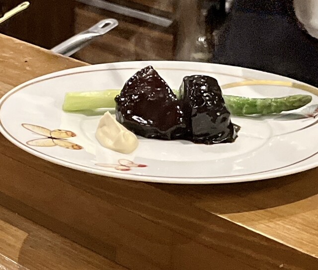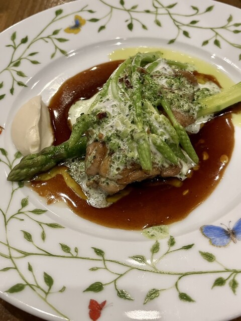 胸腺肉があるとのことでお願いしました。希少部位、下処理も大変だと思うのですが、食感もよくソースをまとって美味しさ倍増。グリーンアスパラ、アスパラソバージュと一緒にいただきました♩