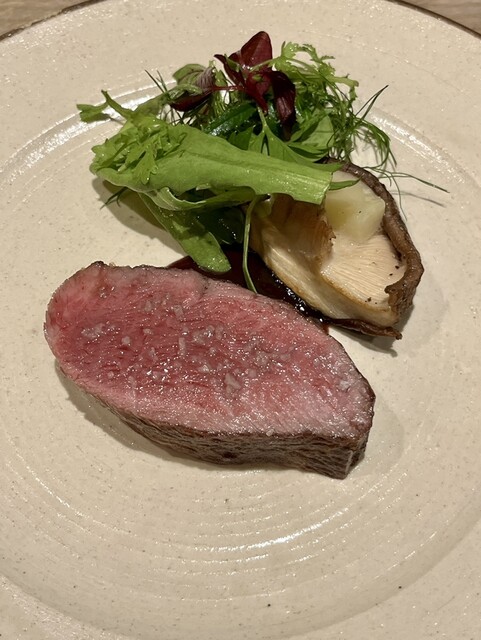 カリンのジャムとワインのソース、長崎の椎茸にヤギのチーズのしっかりとした味を野菜がまとめています。