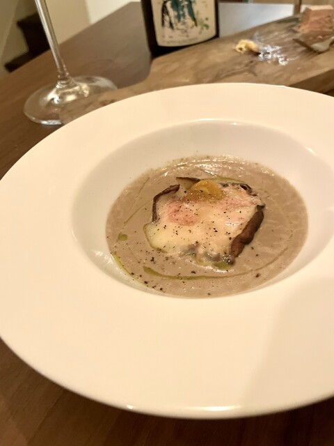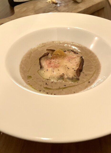 マッシュルームヴルーテに入った椎茸美味しい❗️何よりマッシュルームの香り、チーズの旨みでテンションアップ⤴️