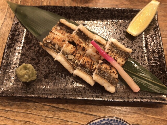 『アナゴの白焼き』や『あん肝』『カキフライ』など追加をして後、おまかせで『にぎり』を出してもらう