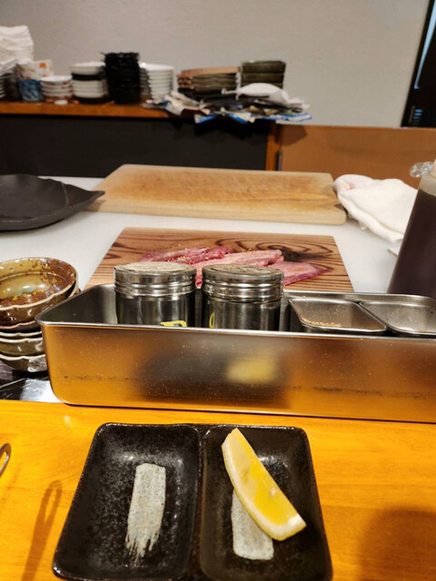 カウンター席で頂いたが、熟成肉を一枚一枚を目の前で切り出し提供してくれるスタイルの優雅な焼肉店である
