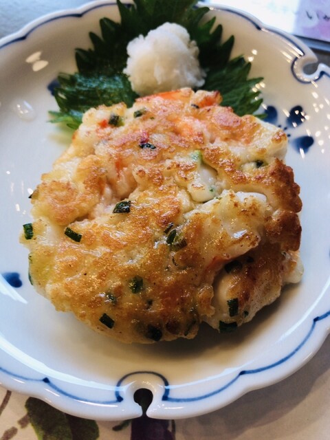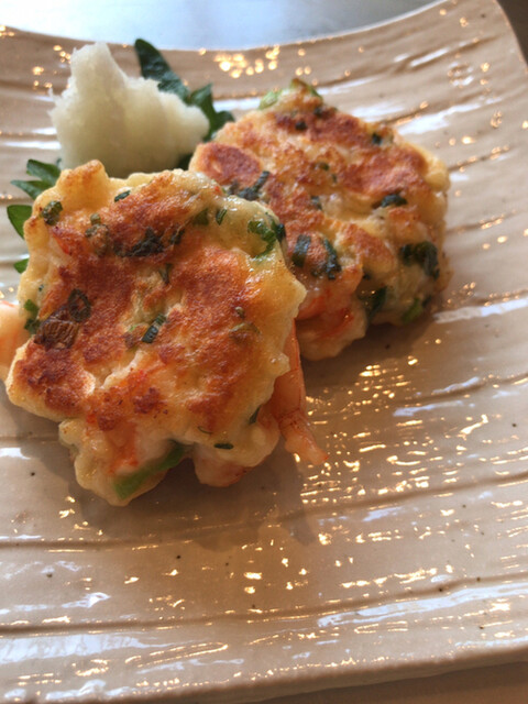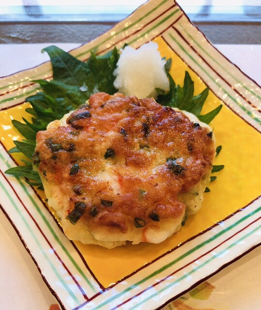 自身も、季節のメニューにあわせ、必ず注文させて頂くのが、絶品の『海老しんじょ焼き』である。