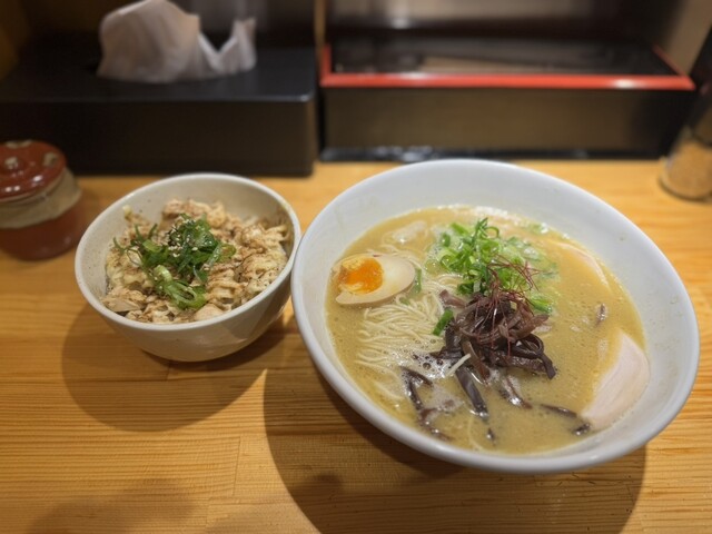 一緒に頼んだ「チャーシューマヨ丼」も絶品。香ばしく炙られたチャーシューに、たっぷりとかかったマヨネーズ。この背徳感、たまりません。ご飯との相性も抜群で、ガツンと食べたい時にぴったりの一品です。