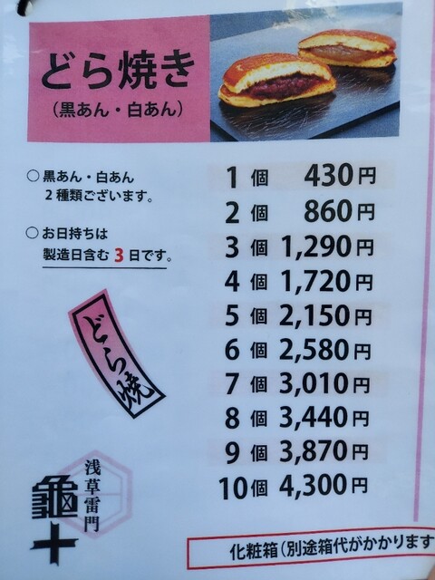 亀十浅草(東武・都営・メトロ)、浅草(つくばEXP)、田原町/和菓子、どら焼き、大福