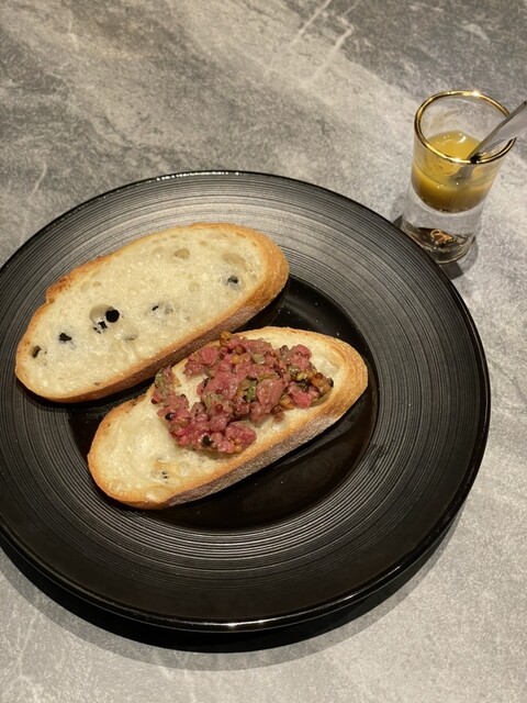 初めに出てきた黒毛和牛のタルタルスカンビーノは、薬味の使い方が巧みで、肉の旨みと香りが立体的に広がります。