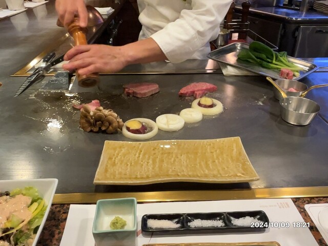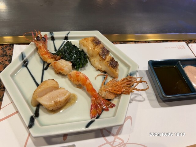 目の前で手際よく調理していただき大変美味しくいただきました。肉も魚介もサラダに至るまで最高でした。
