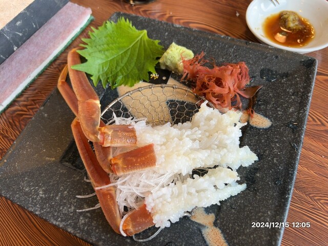 食の内容は100点満点です。かに刺しを甲羅の蟹味噌の中につけて食べる。北陸に住んでいて良かったと思う瞬間。新鮮さが大事です。横の漁港を眺めながら食べられる良い店です。
