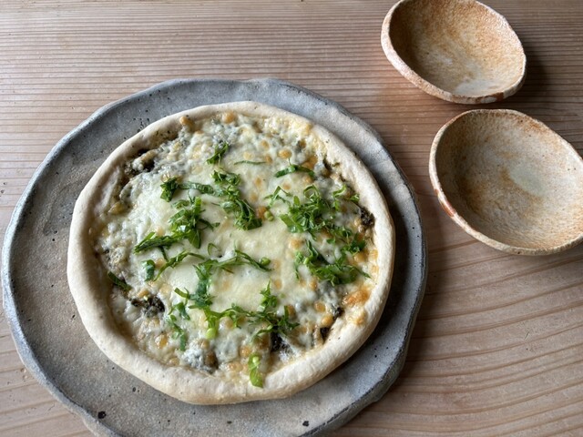 明日葉ピザ、シェアして食べた!明日葉初めて食べたので感動!