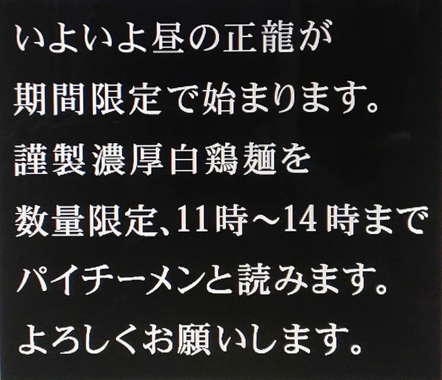 正龍FBより トッピングのないでフォルトな濃厚塩白鶏麺(塩パイチー)