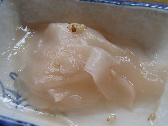 口直しの「甘酢生姜」とデザートに「杏仁豆腐」が提供されました。