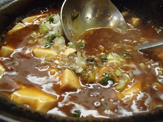 先ず、タイムサービス「サッポロラガー 赤星」¥390を「きゃらぶきおひたし」¥100、「カリフラワーの中華ピクルス」¥100、「浅漬け」¥100の¥100おつまみシリーズ、そして、「ギョーザ」¥500、本日限定の「ブリのあら煮」¥600を追加した「サッポロラガー 赤星」¥390と共にいただき、更にグツグツ熱々の「マーボー豆腐」¥1,100もいただきました。