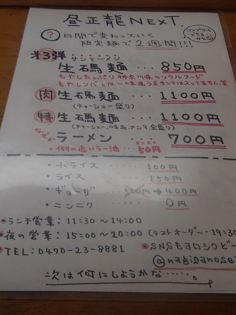 昼正龍NEXT.№2はタイミングが合わず伺うことができなかったので第3段の「生碼麺」¥850は逃すべきではないと食べに行きました。
