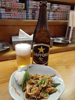 タイムサービスの時間を過ぎていたので、「瓶ビール」はキリン¥500を飲みました。