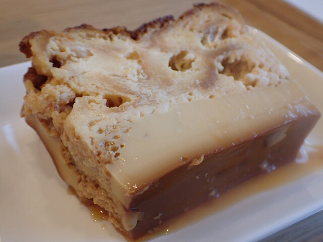 プリン生地にパンを入れてオーブンで焼き上げたぷるぷるモチモチ食感の人気スイーツです。