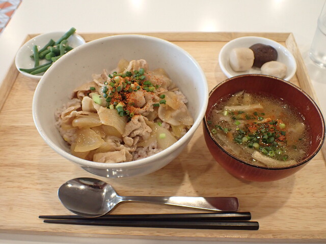 本日の定食 牛すきやき 副菜二品、豚汁 500円