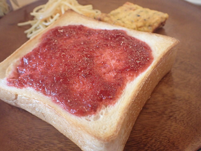 朝パン イチゴジャムパン キッシュ、サラダ スープ 100円 + ホットコーヒー 100円