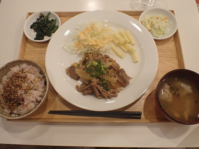 本日の定食 牛やきにく 副菜二品、豚汁、ご飯 500円