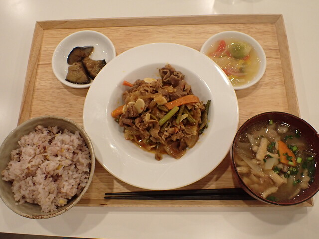 本日の定食 牛スタミナ炒め 副菜二品、豚汁、ご飯 500円