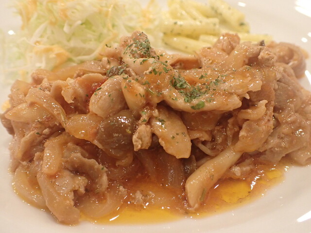 本日の定食 豚の生姜焼き 副菜二品、豚汁、ごはん 500円