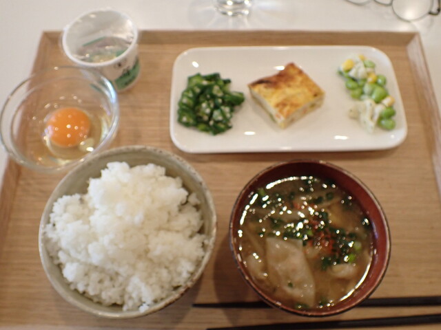 朝定食 目玉焼き、副菜二品 豚汁、ご飯 100円