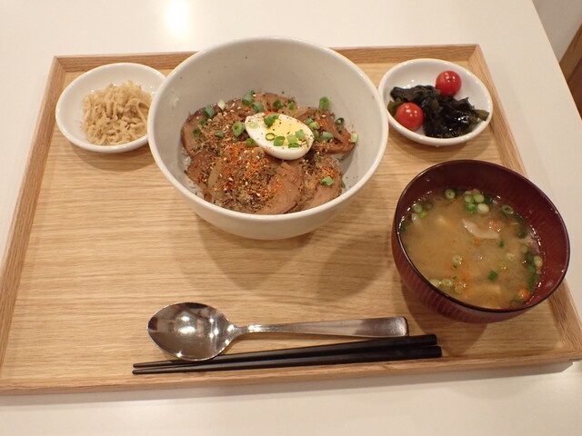 チャーシュー丼 副菜二品 豚汁 ご飯
