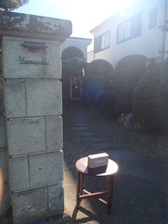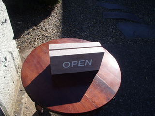 開店中は門の丸椅子の上にOPENの札が置かれています。