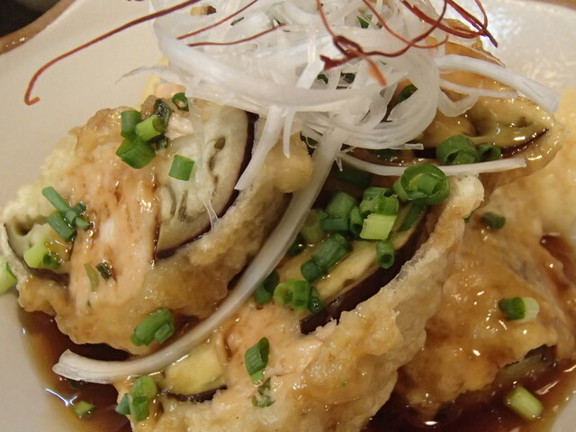 選べるお通しから「万願寺とうがらしとナスの揚げ浸し」