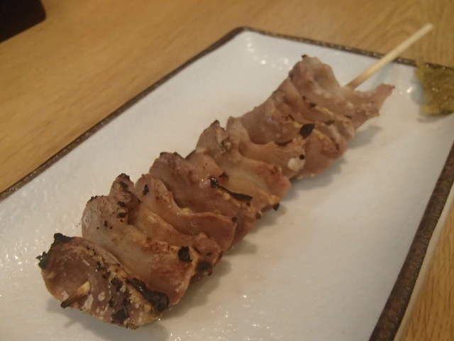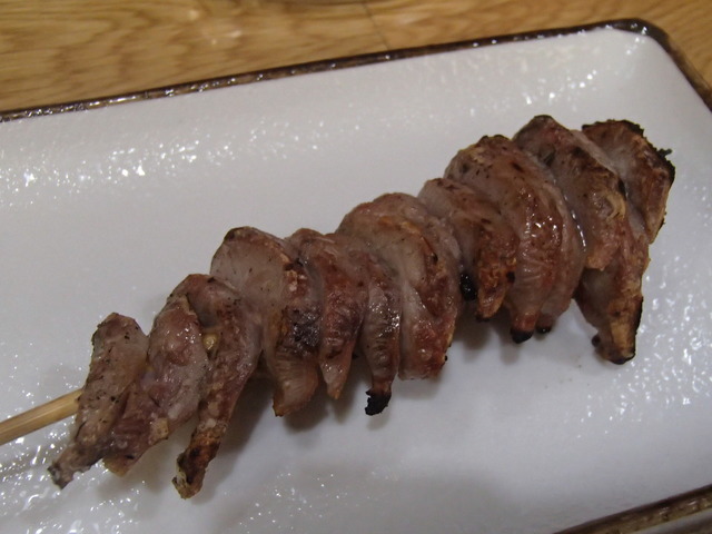 「南九州・親鳥のたたき」、「えいひれ」は「麒麟山 伝統辛口」と共にオーダーし更に、焼鳥「はつもと」、「ぼんじり」、「ねぎま」、「レバー」を追加していただきました。