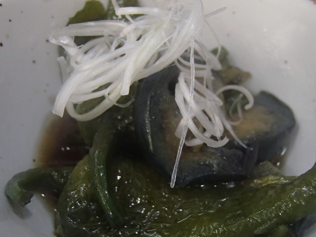 選べるお通しより万願寺とうがらしとナスの揚げ浸し