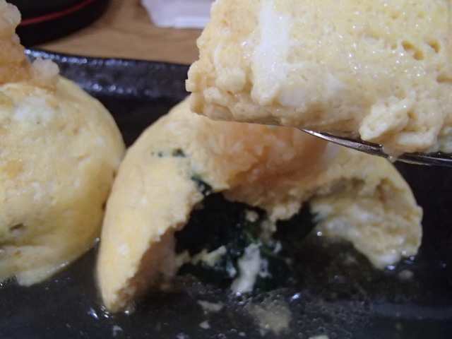 「串焼きおまかせ5品」¥760と「じゃんげ 極辛火入原酒」¥748、選べるお通しから「ピリ辛冷奴」、「きりんざん 吟醸」¥858を追加し、「ほうれん草とチーズのおっぱい玉子」¥528をオーダーしました。
