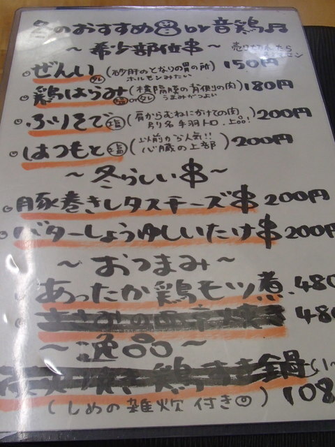 と、「串焼きおまかせ5品」¥760のほか、お勧めメニューやお勧めのお酒など、ついつい目が欲しくなって、また食べすぎ、飲み過ぎてしまいました。