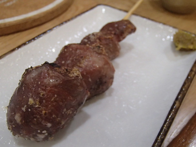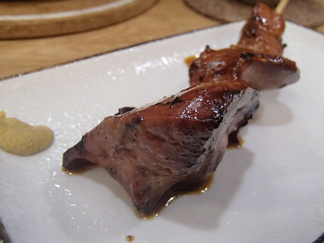 そして、「肉味噌と豆腐のゴマサラダ」、「1/4な新潟風骨付きな唐揚げ」、「雪男」、「せせりしそ巻」、「ぼんじり」、「レバー」をオーダーして、とても美味しくいただきました。