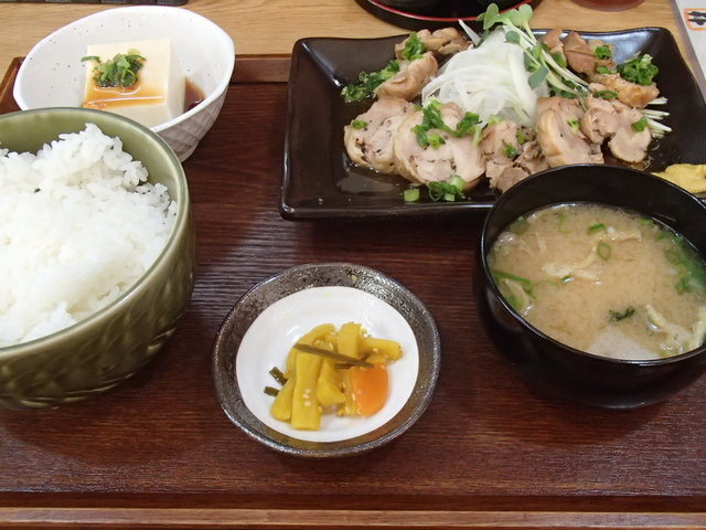 選べるお通しから、「ゆで鶏と水菜の柚子マヨネーズポン酢和え」をチョイスし「高千代 扁平精米辛口本醸造」と共にいただきました。