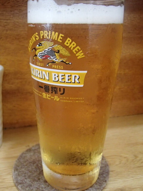 店頭の看板の灯りが消えていると満席の印ですが、丁度席が空きカウンター席に座れました。