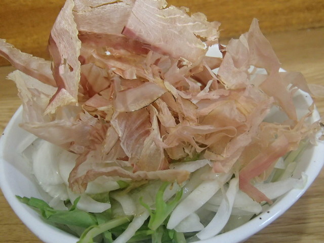 選べるお通しから、「ナスそぼろ黒七味炒め」をチョイスし、「おんどりの新たまねぎのバリバリサラダ」をいただきました。