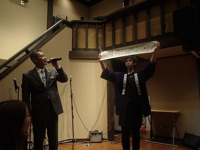 岩崎社長さんが会を盛り上げるトークとインフォメーションが繰り広げられます。