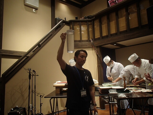 岩崎社長晩酌用に作られたお酒「伝」はじめ、次々に様々な日本酒が提供されました。