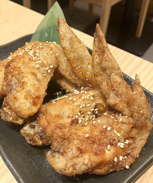 メニューの記載のものからリニューアルしたという手羽先の唐揚げが、赤白黒の3種類から味が選べたので、一番ベーシックな白をチョイス⤴︎