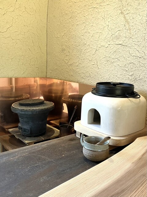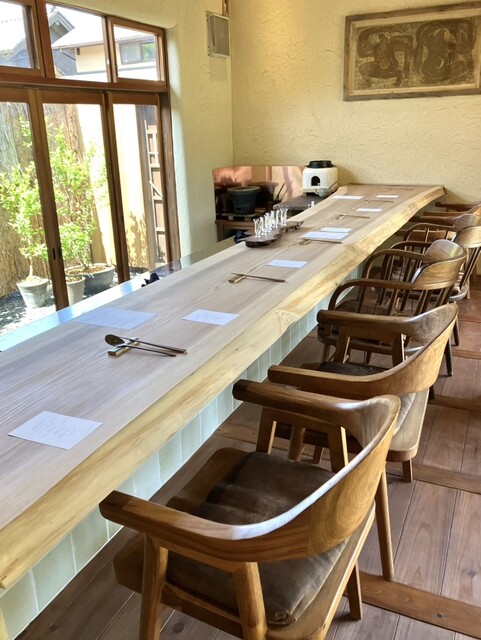 以前のお店も素敵でしたが、田園風景が広がる自然の中のレストランは、漆喰を2度塗りした壁、杉の一枚板カウンター、中国アンティークの建具、選りすぐりの作家さんの食器類、こちらもまた拘りの素敵が詰まっていました♡