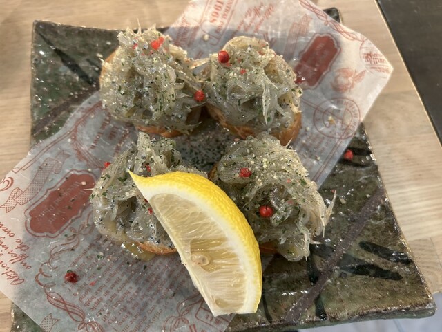 最後にいつもの生シラスのクロスティーニ。水揚げ後すぐ冷凍したものを解凍後、即提供してくれるので、生を食べているのと変わらぬ美味さ。